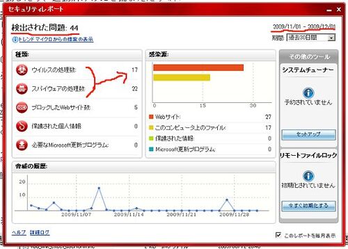 日付が変わり、0時になった瞬間に・・・ウイルスバスターのウイルスレポートが立ち上がりビックリした。まったく、いつものことながら、ビックリさせてくれるぜ。 ※最近は宣伝広告が無くなったからまぁイッカ。ちょっと前までPC起動時に サポート契約の宣伝…