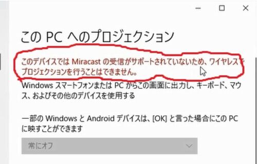 Win10 1903 スマホの画面をPCで表示 接続 ワイヤレスディスプレイ,このPCへのプロジェクション サポートされていない できない時の実験